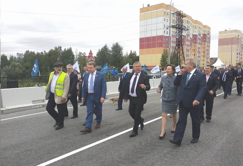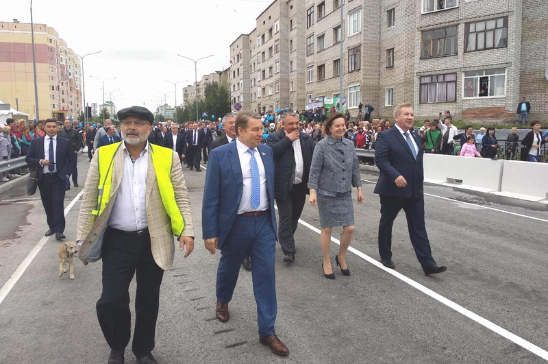 После торжественного ввода в эксплуатацию дороги и мостового перехода, гости и жители города пешком прошли по новой дороге и оценили высокое качество проведённых работ.