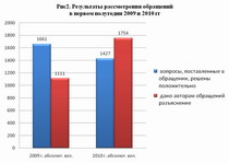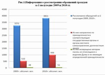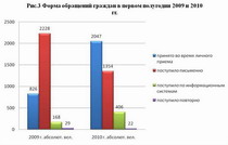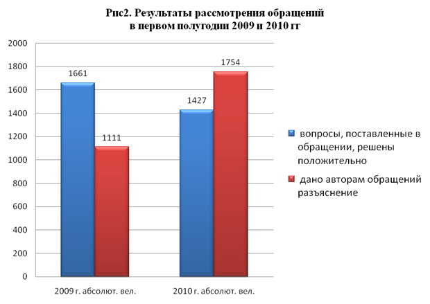Как видно и таблицы и рисунков в 1 полугодие 2010 года в адрес депутатов Думы Ханты-Мансийского автономного округа - Югры поступило 3 821 обращение граждан, что на 17,5 процента превышает число обращений за аналогичный период прошлого года (3 251).