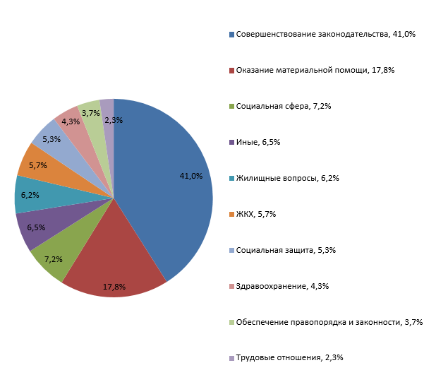Классификация обращений по тематике затронутых вопросов (%)