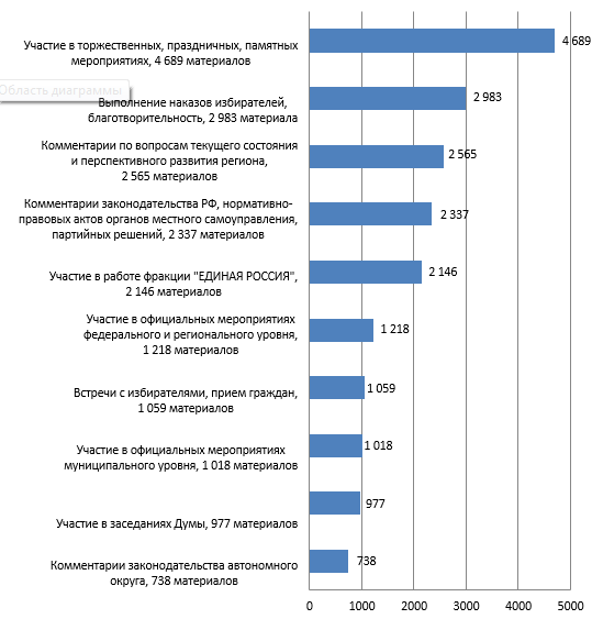 по количеству материалов о деятельности депутатов Думы автономного округа в 2021 году