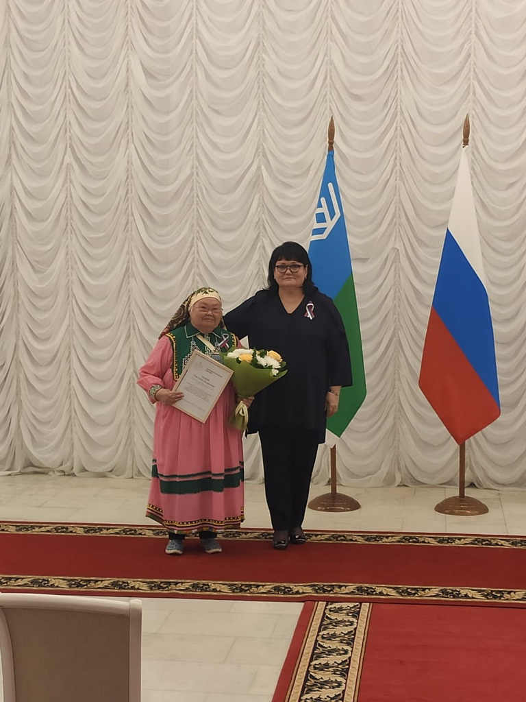 Наталья Леонидовна вручила Благодарственное письмо Совета Федерации Федерального собрания РФ председателю общины коренных малочисленных народов Севера «Хунзи» Светлане Хунзи.