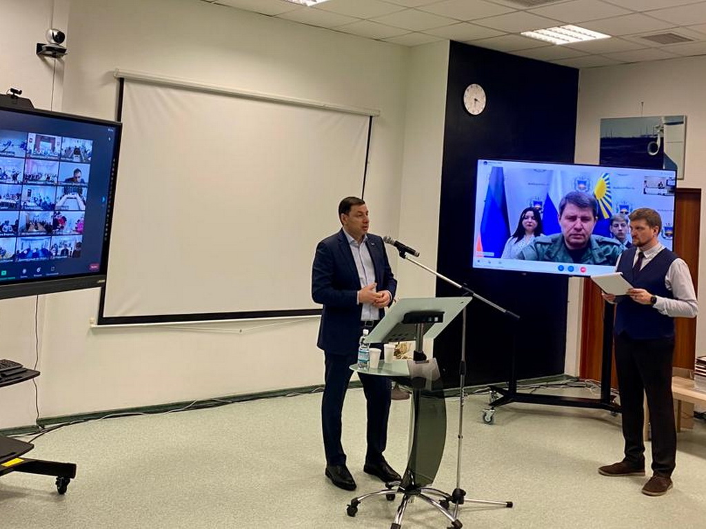 По видеосвязи к встрече присоединились представители Макеевки (ДНР) во главе с главой администрации города Владиславом Ключаровым. Он поблагодарил Югру и югорских добровольцев за всестороннюю помощь и поддержку.