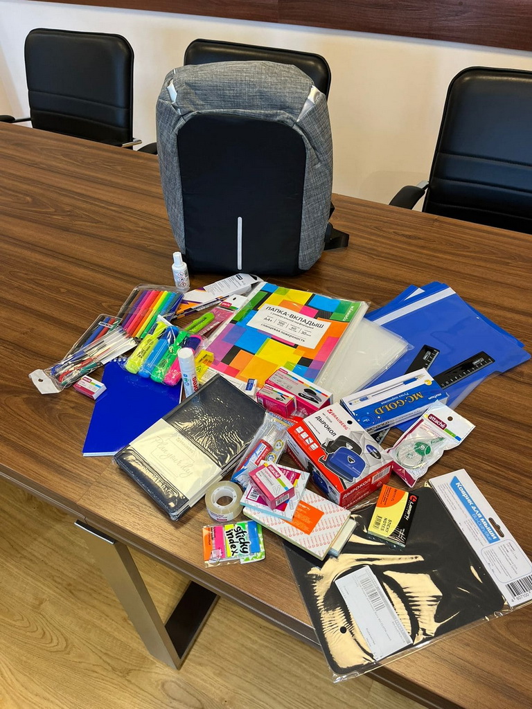 Игорь Бруслиновский передал школьный рюкзак с канцтоварами для детей из Макеевки