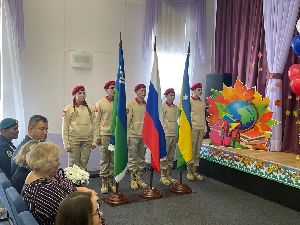 На линейке торжественно прозвучал гимн России, и впервые – гимн окружной столицы, который утвердила в июне городская Дума. Юнармейцы внесли в зал российский триколор, флаги автономного округа и Ханты-Мансийка.