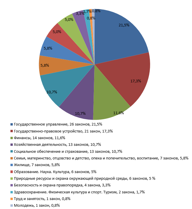 по сферам законодательства (%)