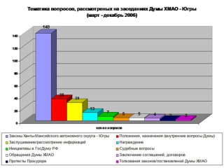 Тематика вопросов, рассмотренных на заседаниях Думы ХМАО - Югры