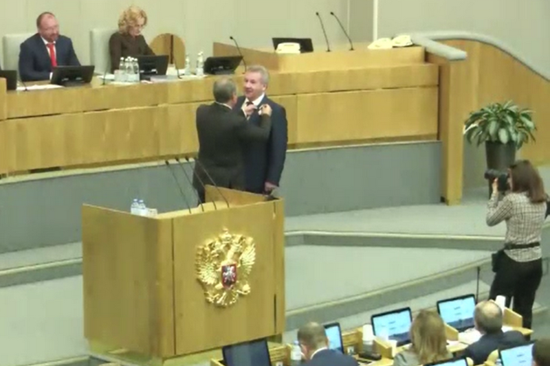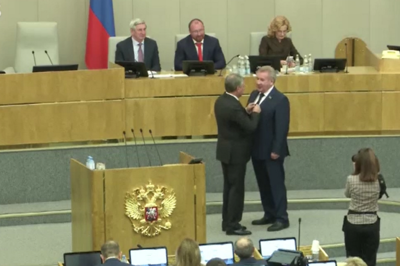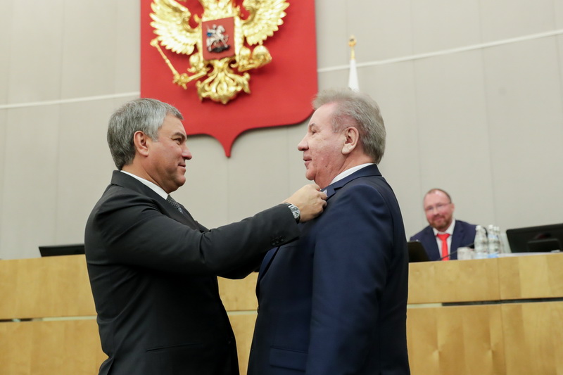 Награда вручена за особый вклад в развитие законодательства и парламентаризма в Российской Федерации. Вручение прошло в ходе пленарного заседания нижней палаты российского парламента.